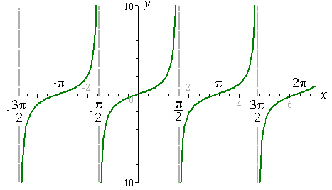 Poslední goniometrickou funkcí, se kterou umí Arduino pracovat je funkce tangents. Ta je dána jako poměr protilehlé strany ku přilehlé v pravoúhlém trojúhelníku. Má periodu jednoho PI. Rozsah funkčních hodnot je od plus do minus nekonečna.